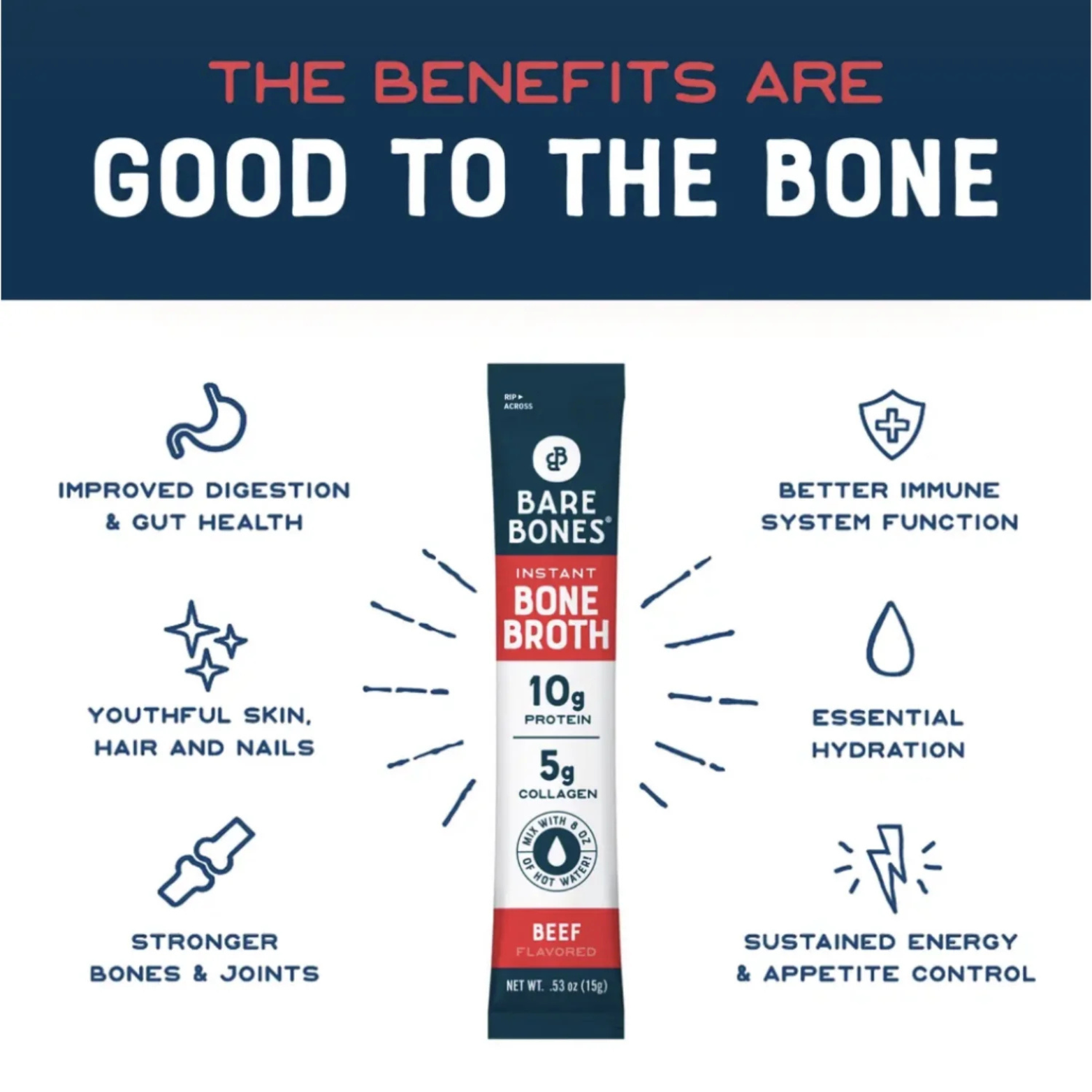 Choose from Beef (made with grass-fed beef) or Chicken (made with high-quality, natural ingredients). Both options are free from artificial flavors, mix easily with hot water, and require no refrigeration.